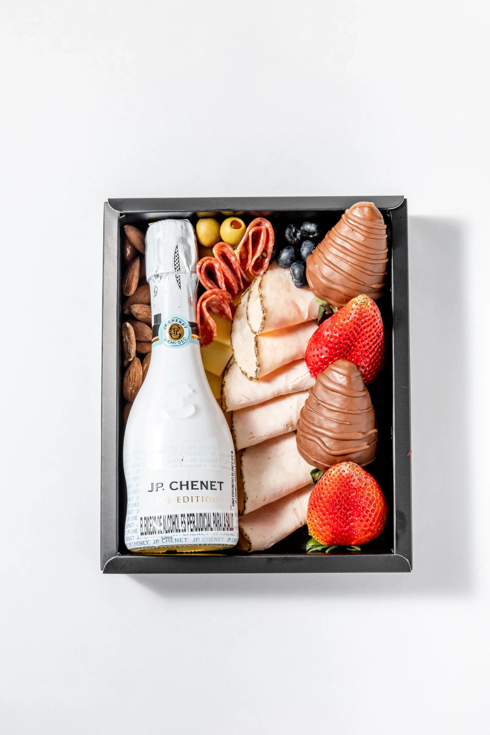 La Tabla Chenet es una opción elegante y práctica para disfrutar en cualquier ocasión. Incluye una botella JP Chenet de 200 ml, acompañada de una cuidada selección de sabores que combina pavo a las finas hierbas, salami Napoli y queso gruyere, logrando un balance perfecto entre suavidad e intensidad.