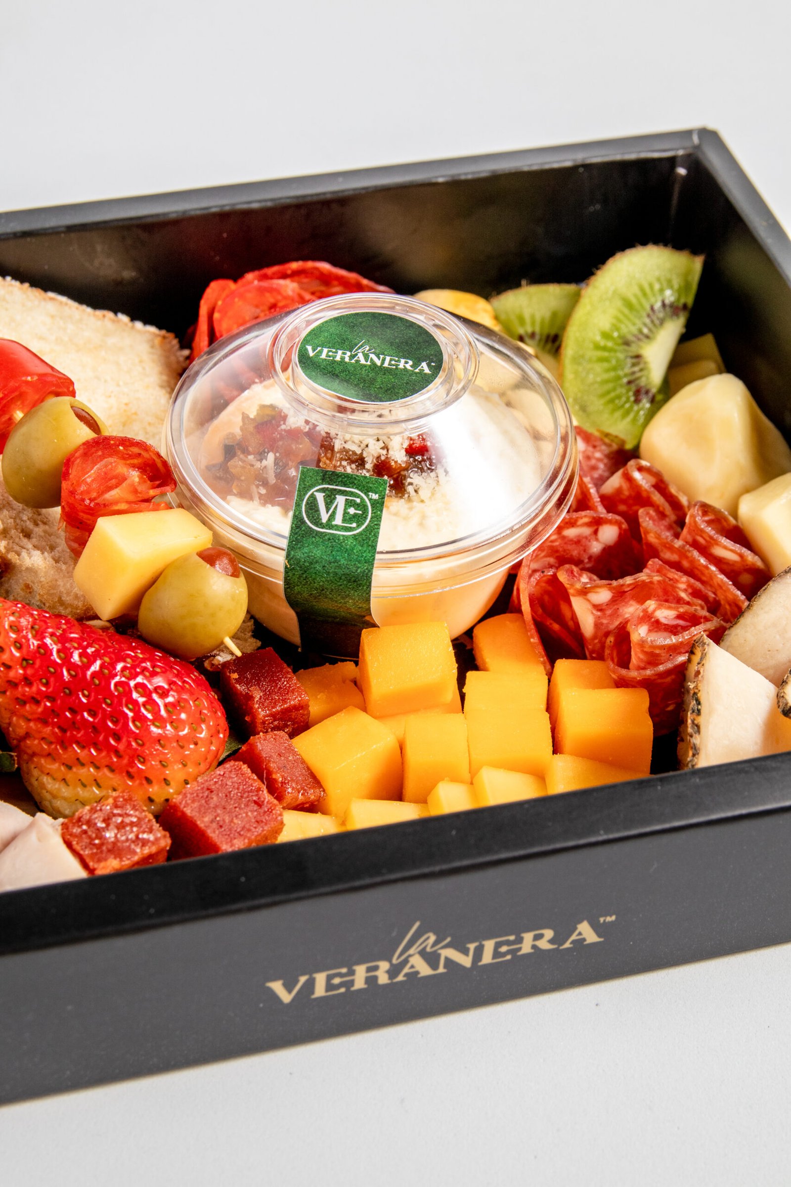 Una combinación equilibrada de pan de masa madre, dip de la casa, selección de quesos, frutas frescas y carnes frías, ideal para compartir, regalar y disfrutar en cualquier ocasión especial.